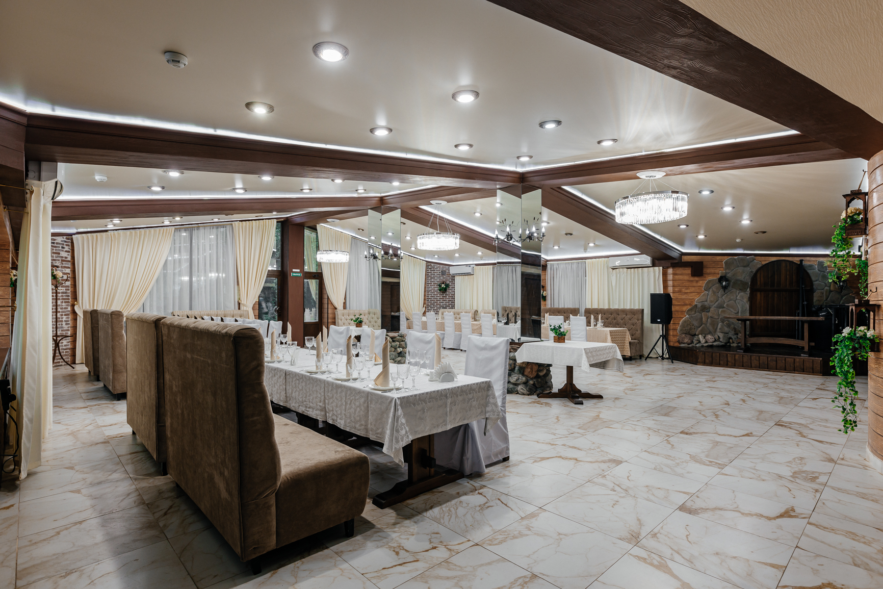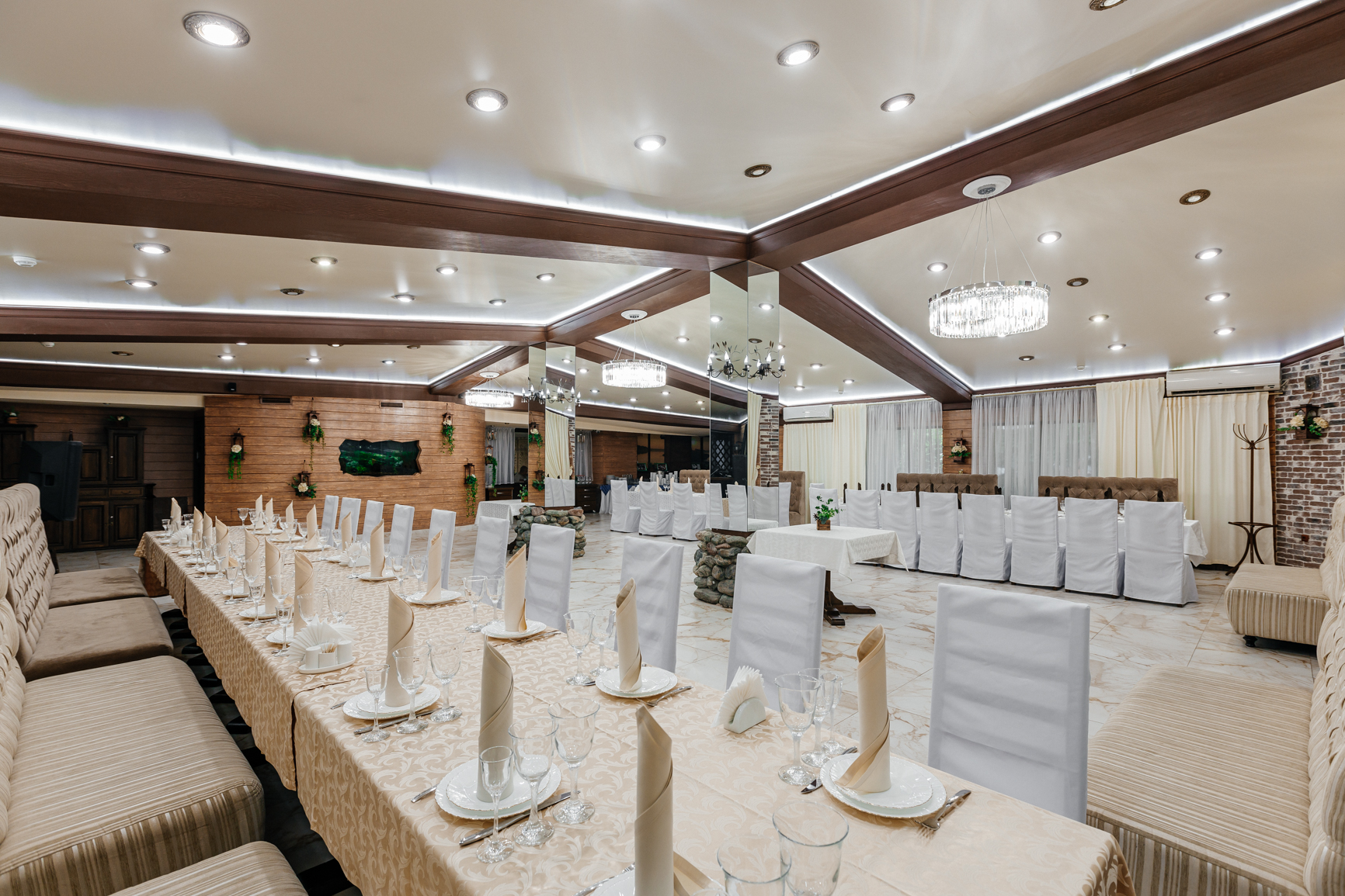 Основной банкетный зал нашего комплекса — идеальное место для роскошных свадеб и юбилеев. Уютная атмосфера, изысканное меню с европейской и донской кухней, а также помощь профессионального менеджера в организации сделают ваше торжество незабываемым. Зал подходит для холодного времени года, а вместимость и стильный интерьер создадут праздничное настроение для вас и ваших гостей.