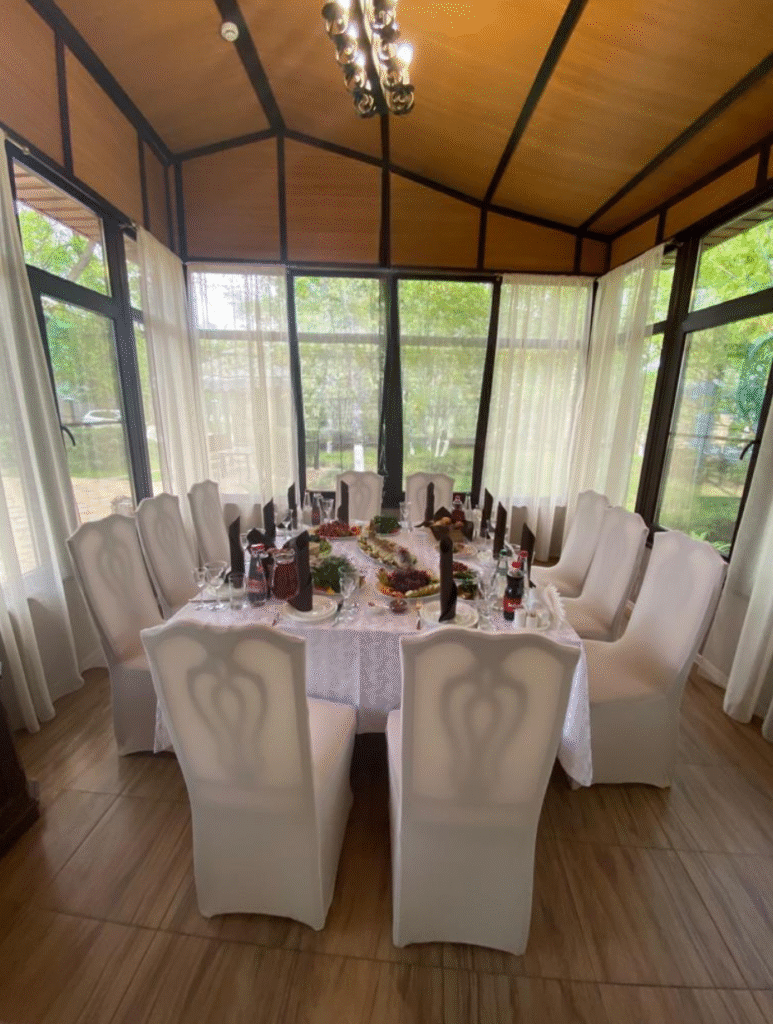 Малый летний зал идеально подходит для камерной свадьбы или другого торжества в кругу самых близких. Маленькая свадьба-это формат, в котором нет суеты, но есть самое главное: искренность, близость и внимание к каждому гостю. Зал вмещает до 15 гостей, можно декорировать по своему желанию, оснащен кондиционером и холодильником .У нас можно взять в аренду проектор, колонку и экран. При аренде зала все блюда и напитки можно приносить с собой
